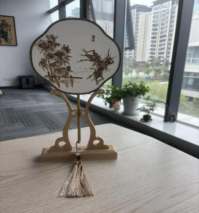 在中国传统文化中,蟋蟀的鸣叫声听起来像“福禄寿”三个字的发音,因此被认为是吉祥物。宁津斗蟋风俗为省级非物质文化遗产代表性项目,人们常常会斗、养蟋蟀,以期望能够带来好运和财富。作品正面内容:烙痕深浅交错间,孩童正围在一起,指尖悬在陶罐边缘,正在进行童年最乐此不疲的游戏—斗蟋。屏气凝神的模样似要将虫鸣都拢进掌心—那声声 “瞿瞿”,在老辈人听来正是 “福禄寿” 的谐音,藏着秋日里最质朴的祈愿。作品反面内容:三只蟋蟀振翅欢鸣。褐甲泛光,后腿蹬弹,触须相碰似低语,合奏夏夜田园曲,藏着质朴祈愿。
